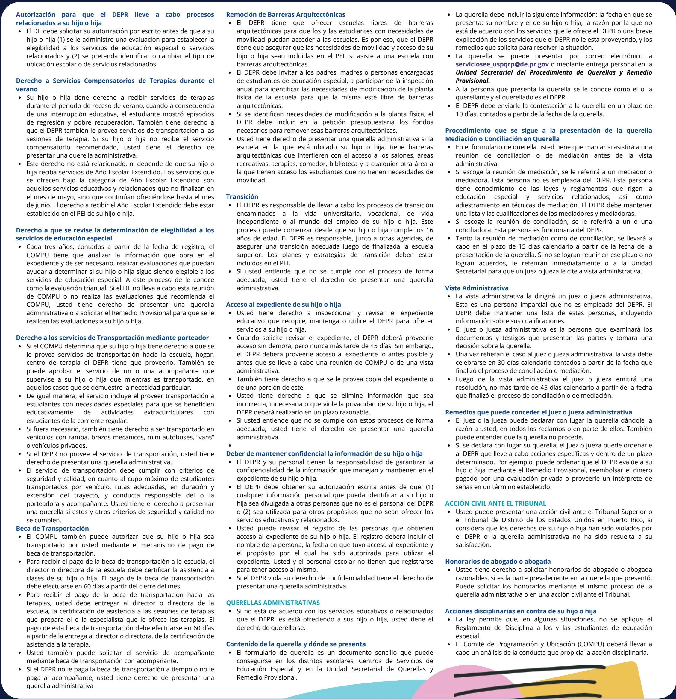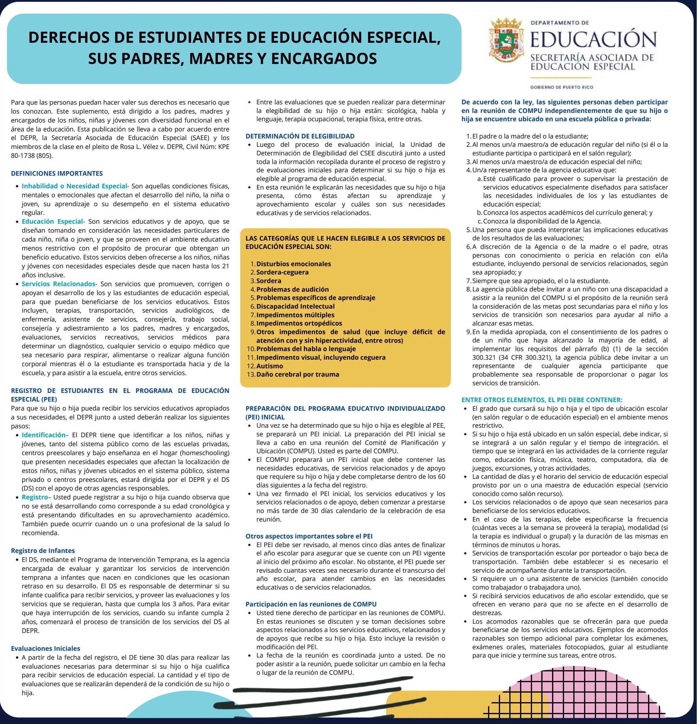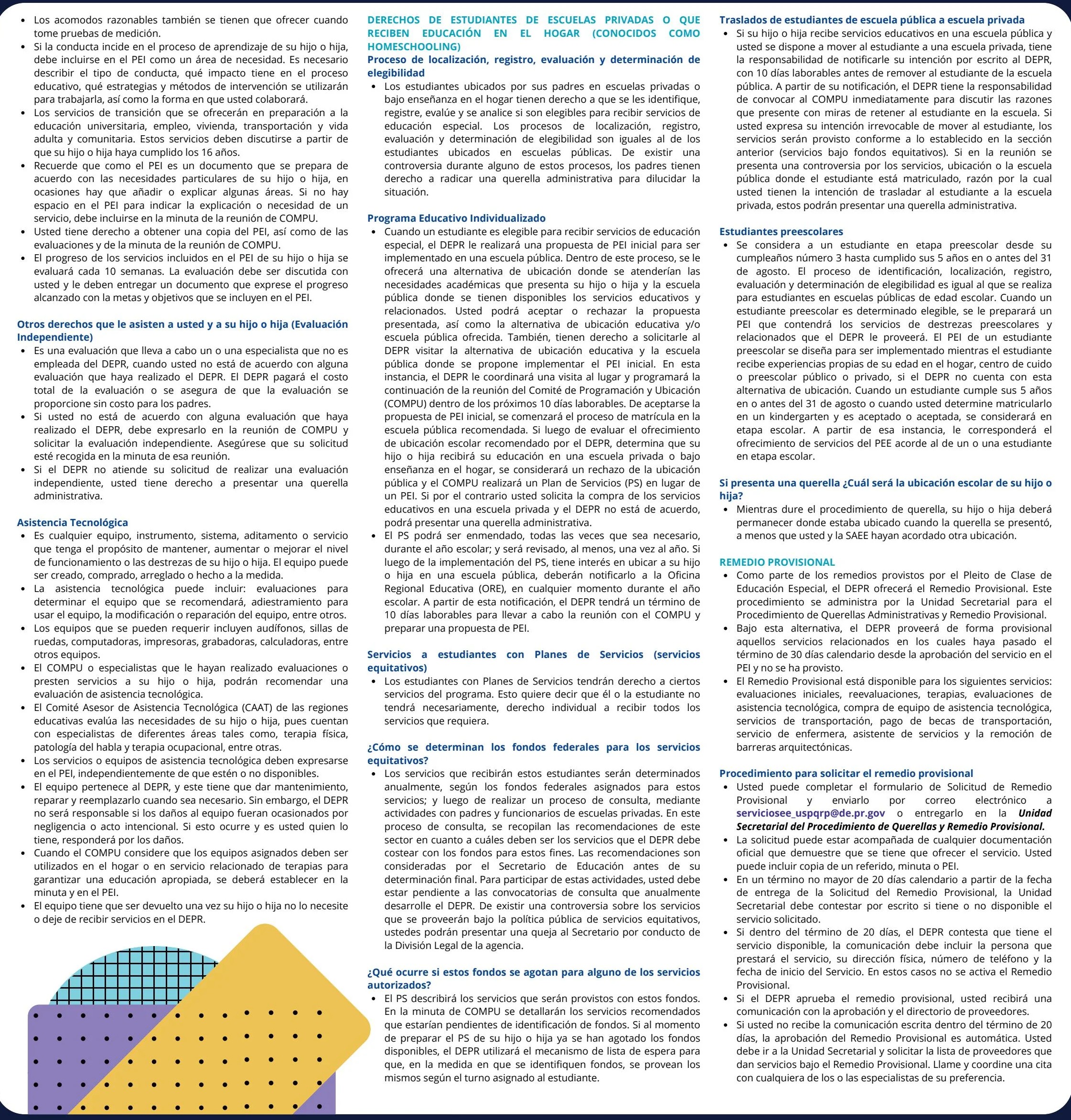 Derechos de estudiantes de Educación Especial, sus padres, madres y encargados